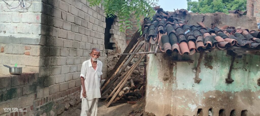 उम्मेदाबाद में बारिश से कच्चा मकान ढहा – लकवाग्रस्त गरीब परिवार का आशियाना मलबे में तब्दील