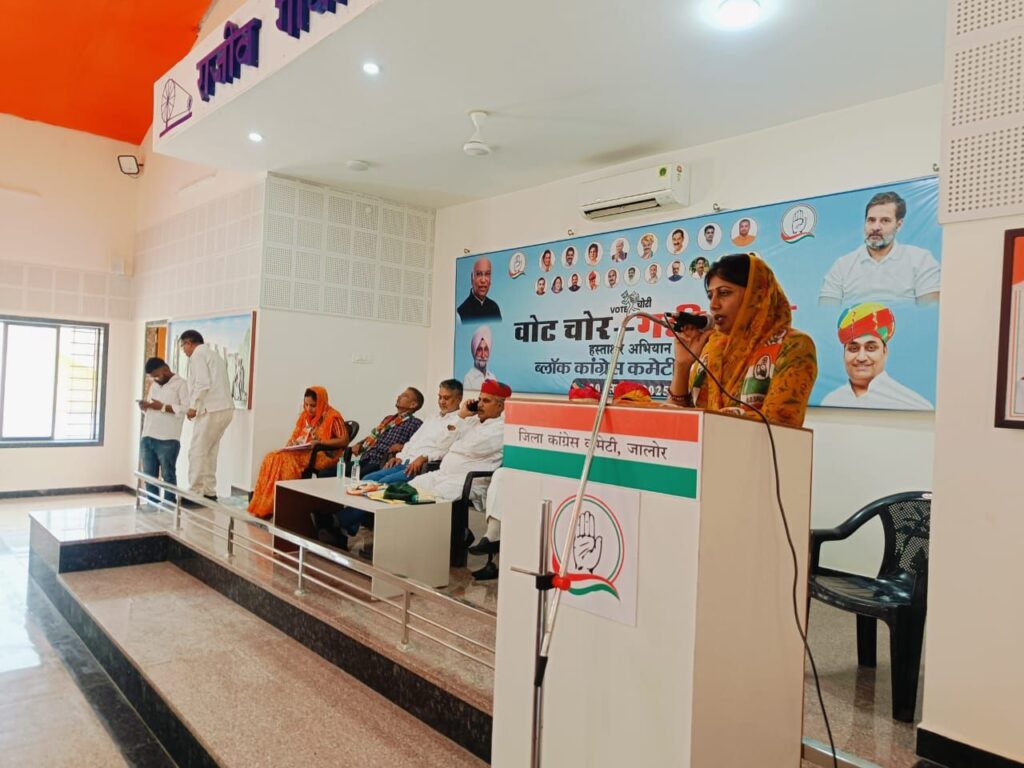 बैठक को विधानसभा प्रत्याशी रमिला मेघवाल ने संबोधित करते हुए कहा कि केंद्र की भाजपा सरकार वोट चोरी करके भारतीय संविधान को गहरी चोट पहुंचा रहे है। हम सभी कांग्रेसजन को गांव गांव, ढाणी ढाणी तक पहुंचाने का कार्य करना चाहिए।