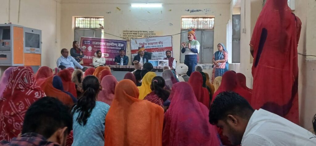 कार्यक्रम में विकास अधिकारी दिनेश विश्नोई, राजस्थान ग्रामीण बैंक से पंकज, स्टेट बैंक ऑफ इंडिया के कमल कुमार, वित्तीय साक्षरता केंद्र से धोली देवी, मनोहर, राजीविका से खुशबू, सुआलाल सहित अनेक ग्रामीण मौजूद रहे।