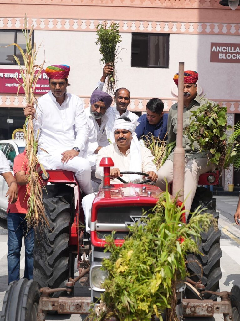 अन्नदाता की खराब फसलों के साथ ट्रैक्टर से विधान सभा पहुंचे जूली
