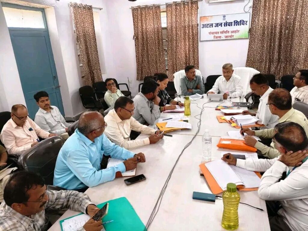जालोर ( 17 सितम्बर 2025 ) सेवा पर्व पखवाड़े के तहत आयोजित होने वाले ग्रामीण एवं सेवा शिविरों की तैयारियों को लेकर बुधवार को पंचायत समिति सभागार आहोर में प्रभारी सचिव विश्वमोहन शर्मा की अध्यक्षता में विभागीय अधिकारियों की समीक्षा बैठक सम्पन्न हुई।