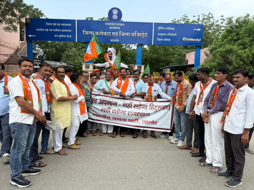 जालोर ( 2 सितम्बर 2025 ) भारतीय जनता पार्टी जालोर द्वारा आज जिला मुख्यालय पर एक विरोध प्रदर्शन आयोजित किया गया। यह विरोध कार्यक्रम कांग्रेस के पूर्व राष्ट्रीय अध्यक्ष व विपक्ष के नेता राहुल गांधी द्वारा देश के यशस्वी प्रधानमंत्री नरेंद्र मोदी की दिवंगत पूज्य माता जी को भरे मंच से अपमानित एवं अभद्र भाषा का प्रयोग करने के घृणित कृत्य के खिलाफ आयोजित किया गया।