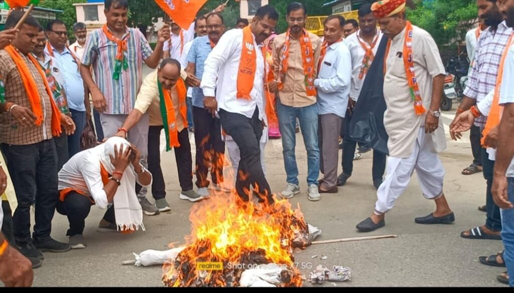 जिलाध्यक्ष जसराज राजपुरोहित के निर्देशानुसार कार्यकर्ताओं ने कलेक्ट्रेट के बाहर राहुल गांधी का पुतला दहन कर कड़ा विरोध दर्ज कराया और ऐसी ओछी मानसिकता की कड़ी निंदा की। भाजपा कार्यकर्ताओं ने कहा कि किसी भी राजनीतिक मतभेद के बावजूद इस प्रकार की अमर्यादित भाषा का प्रयोग भारतीय संस्कृति व लोकतांत्रिक मर्यादाओं के विरुद्ध है।