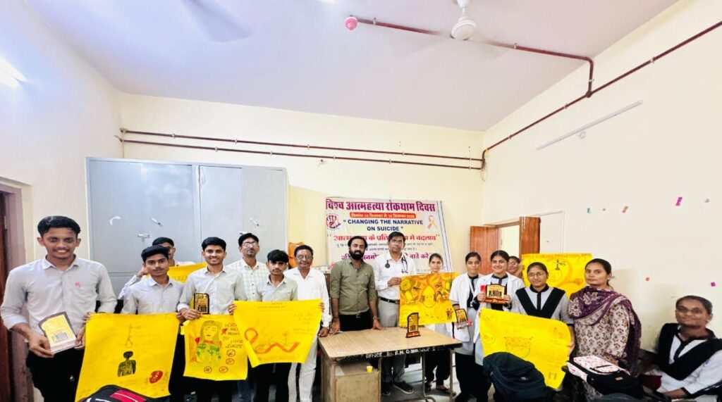 समापन अवसर पर नर्सिंग विद्यार्थियों ने चार्ट बनाकर “आत्महत्या नहीं करने” का संदेश दिया। कार्यक्रम का संचालन सीनियर नर्सिंग ऑफिसर शहजाद खान ने किया। इस दौरान महाविद्यालय के यशवंत बंसल, डिंपल गर्ग और अतिरिक्त प्रशासनिक अधिकारी रमेश गहलोत सहित कई विद्यार्थी व अधिकारी मौजूद रहे।
